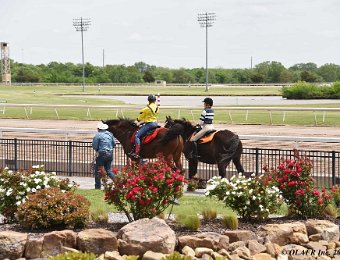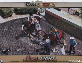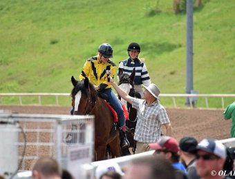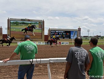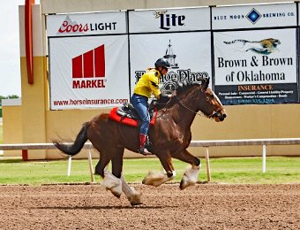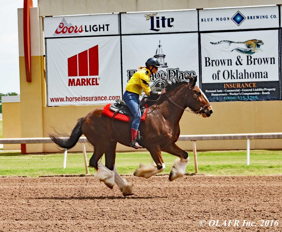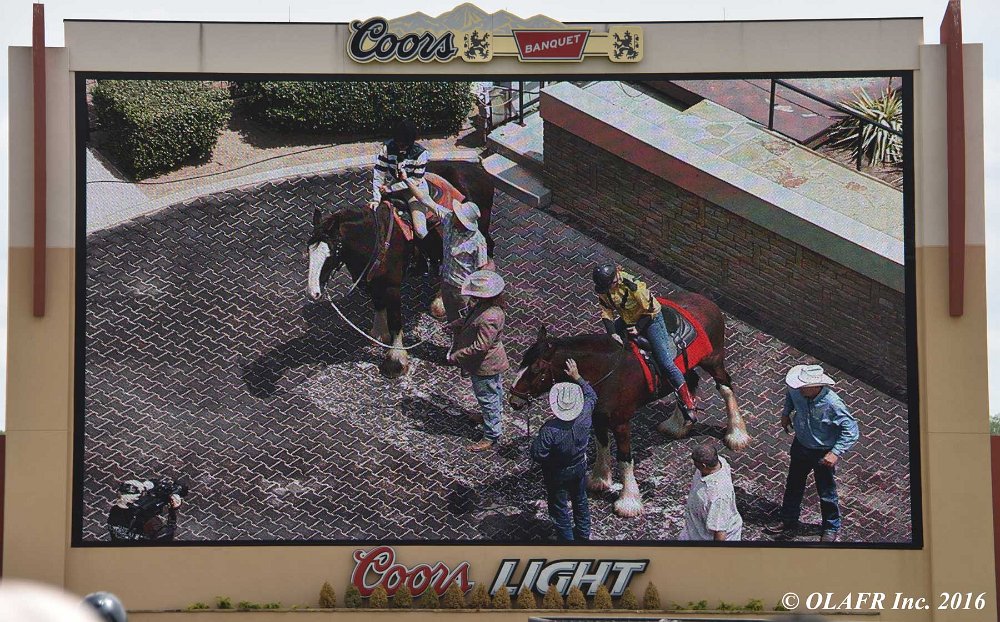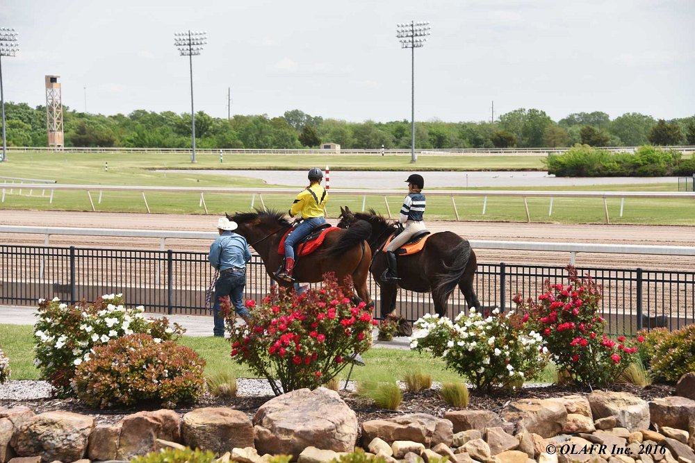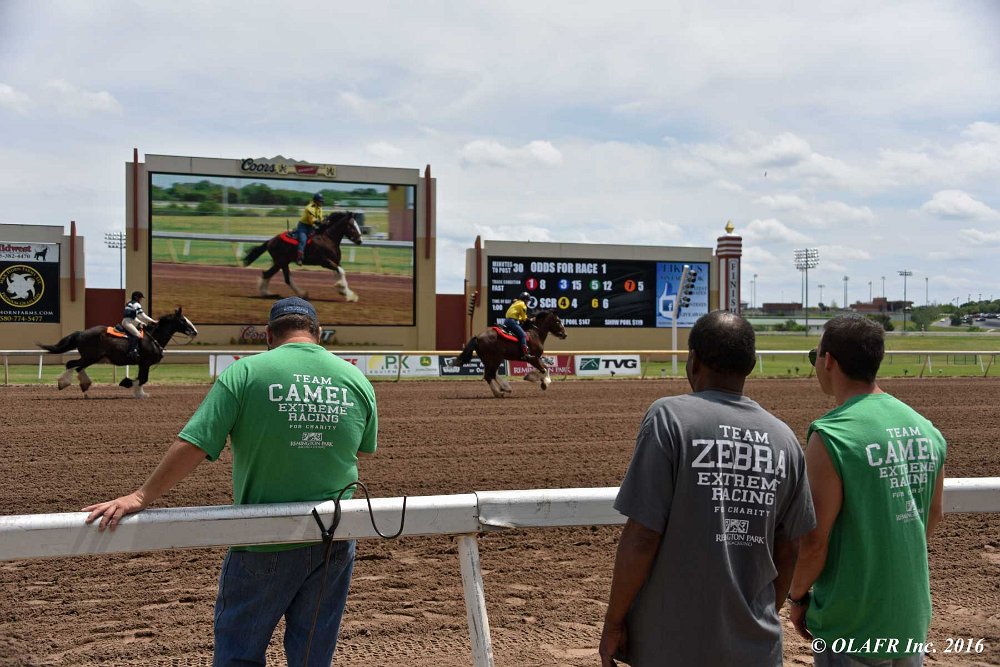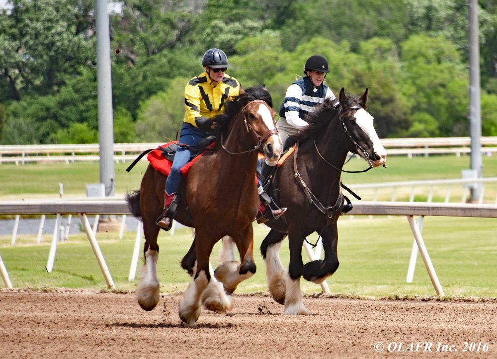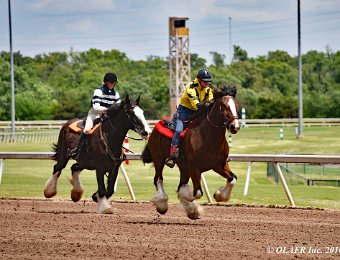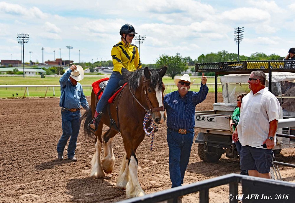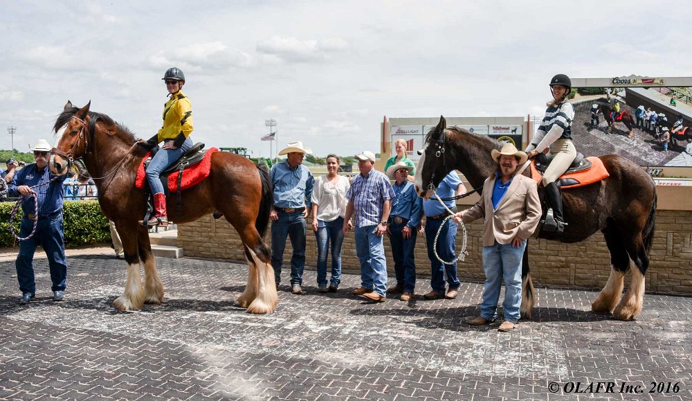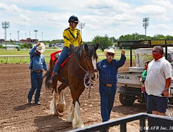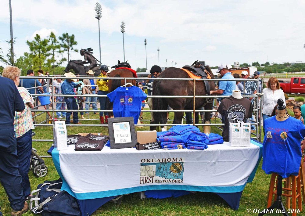 Express Ranch's intrepid "heavyweight" division in their own saddling enclosure behind the OLAFR table. Later in the day, they became a popular "meet and greet" team for the general public, including a family from New York City who had never patted a horse before!